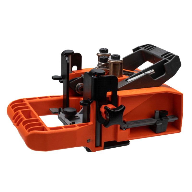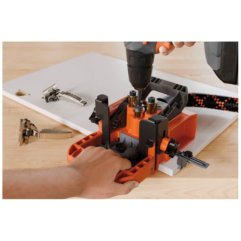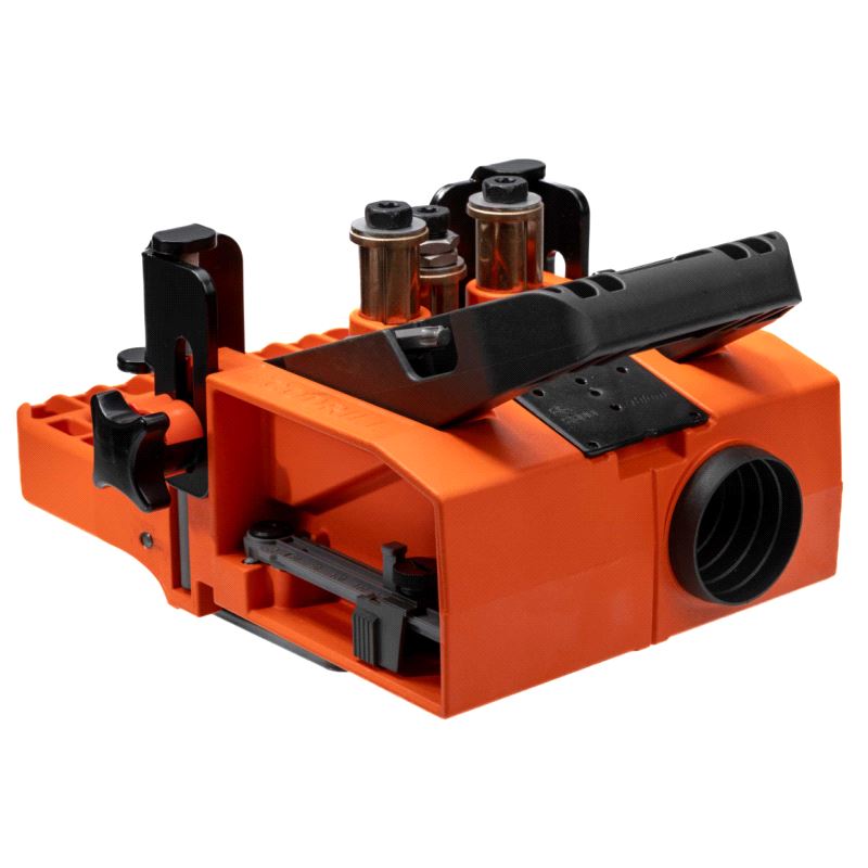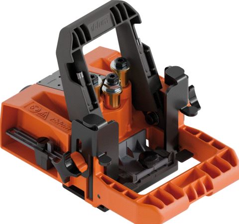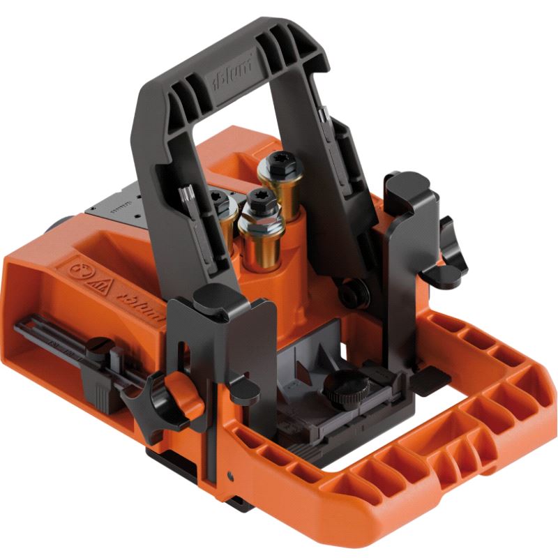 Borejig for Hengselboring. Senterspindel for bor Ø35mm og 2 stk. spindler med senteravstand CC45mm plassert 9,5mm offset for senterspindel. Mer info
