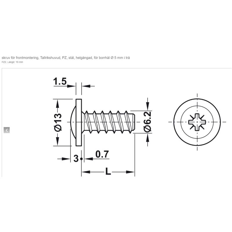Euroskrue Ø6,2 x 19mm Hode Ø13
