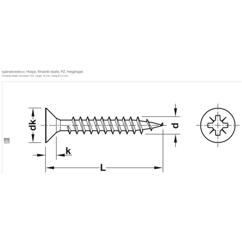 Senkhodeskrue Hospa 3,5 x 35mm Pzd. fullgjenget, 1.000-pk.