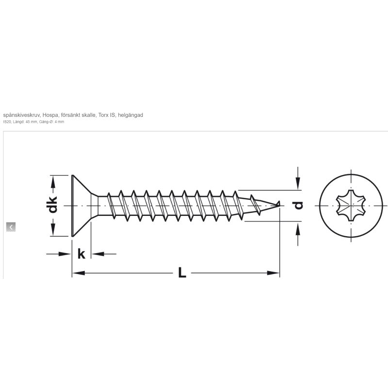Senkhodeskrue Hospa 4,0 x 45mm Torx, 1.000-pk.