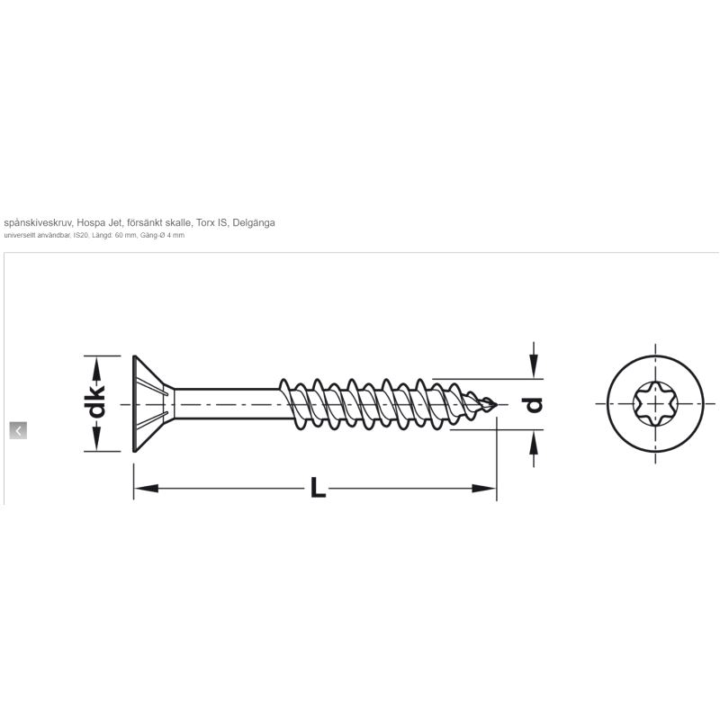 Torx Senkhodeskrue Hospa Jet 4,0 x 60mm, 200pk.