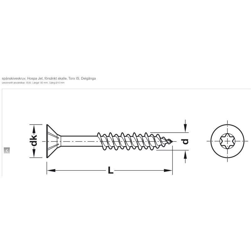 Torx Senkhodeskrue Hospa Jet 6,0 x 80mm, 100pk.