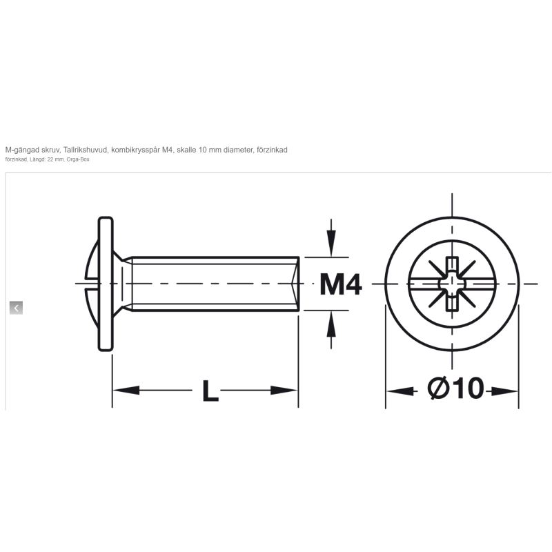 Kombiskrue M4 x 22mm, 100-pk.