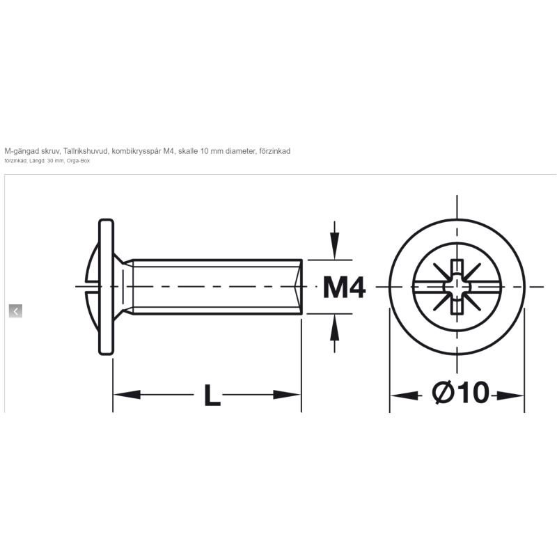 Kombiskrue M4 x 30mm, 100-pk.