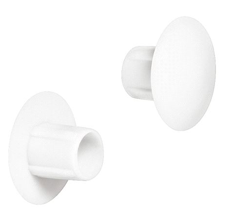 Dekkappe for hull Ø5mm. Største diameter Ø10mm, farge Hvit. Pris gjelder pr. 500 stk. Mer info