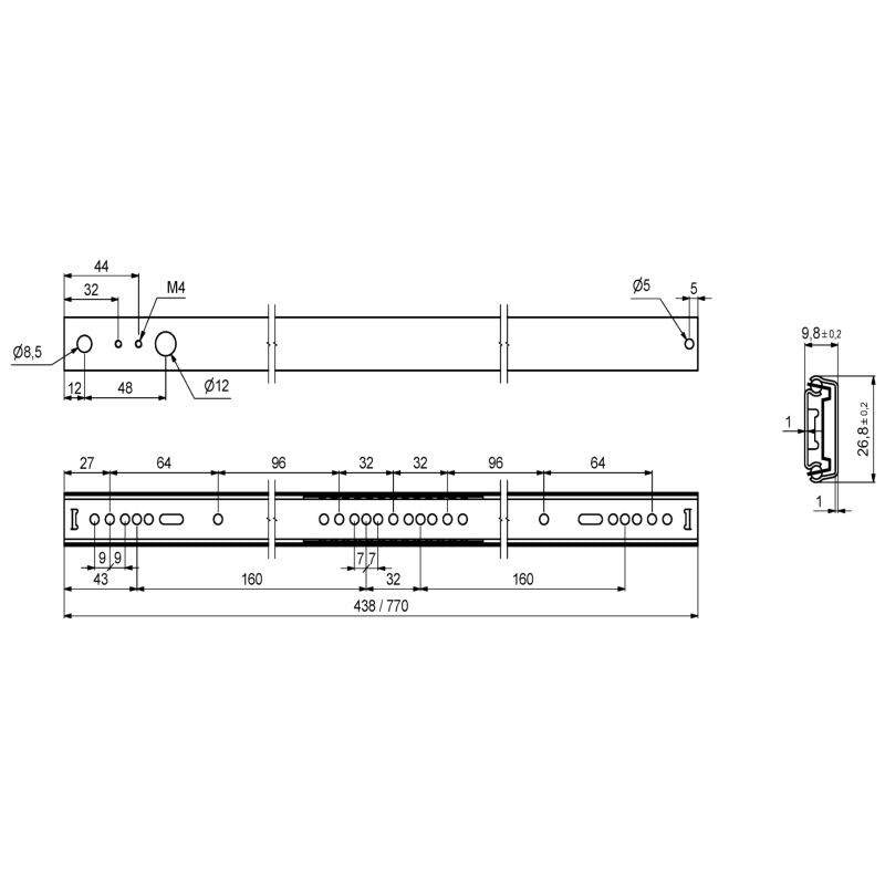 Kuleuttrekk 27 x 9,8 x 438 mm