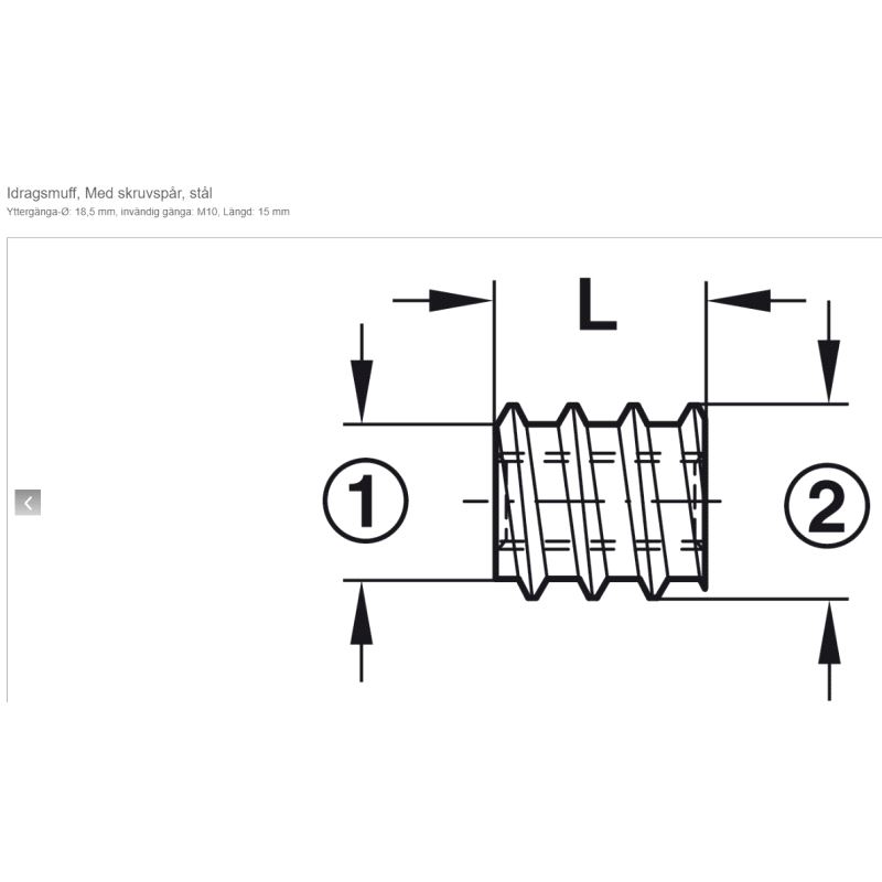 Iskruingsmutter Tverrspor M10 x Ø15/18,5 x L15mm, 100-pk.