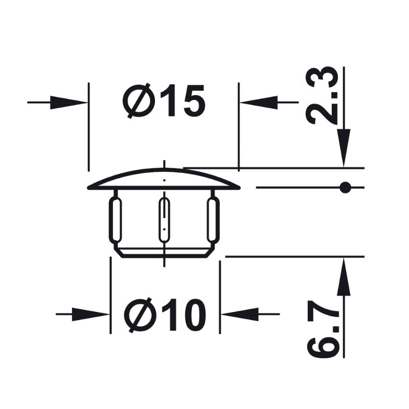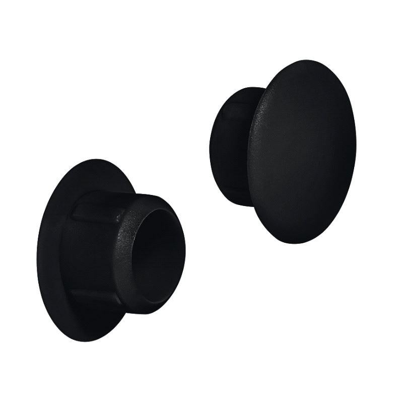 Dekkappe for hull Ø10mm. Største diameter Ø15, farge Sort. Pris gjelder pr. 500 stk. Mer info