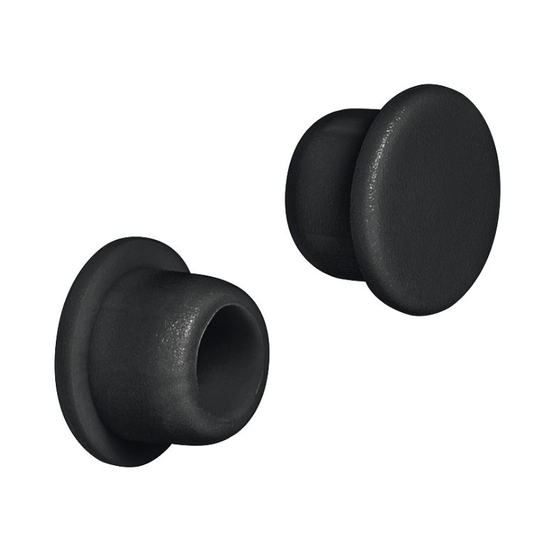 Dekkappe for hull Ø6mm. Største diameter Ø8, farge Sort RAL9011. Pris gjelder pr. 100 stk. Mer info