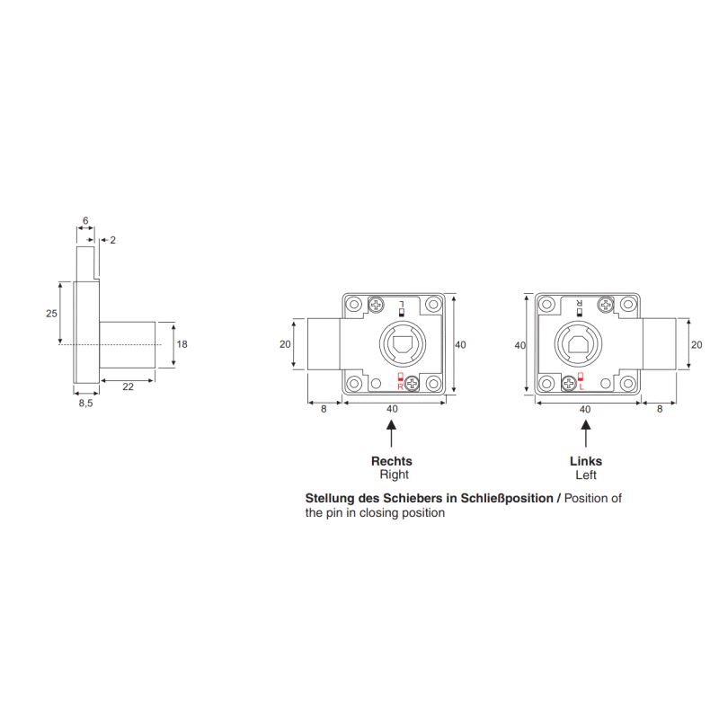 Låskasse omstillbar for Høyre eller Venstre lukning.