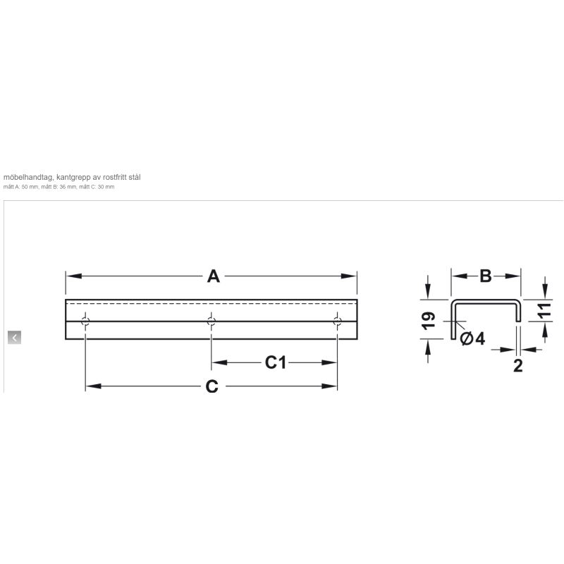 Leppegrep for montering på skuffefrontens innside. Rustfritt stål. Mer info