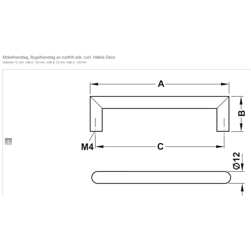 Bøylegrep Hafele Deco Ø12 Rustfri CC128mm