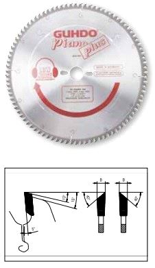 Blad spesielt godt egnet for formattering av melamin-belagte plater, 40 grader spissvinkel og 0 grader sponvinkel i kombinasjon med spesielt finkornet hardmetall sørger for rent snitt på begge sider av platen - selv uten bruk av forriss.
