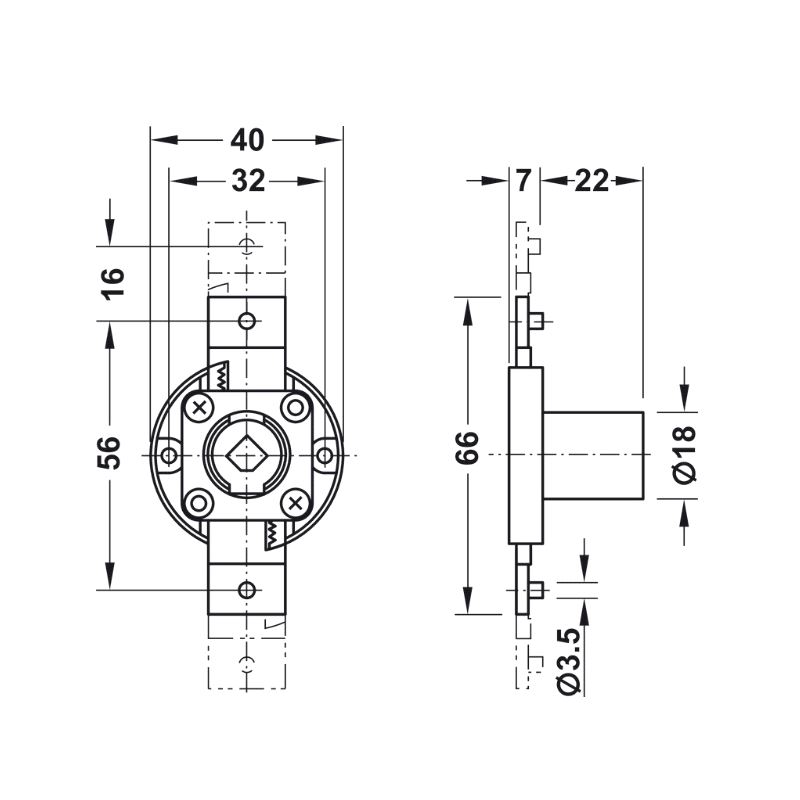 Dreiestanglås, venstre