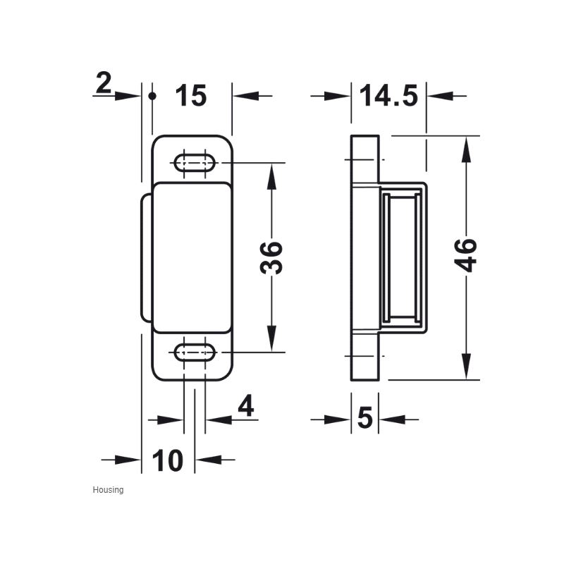 Magnetlås 46 x 15mm inkl. motstykke. Pris gjelder pr.stk. Mer info