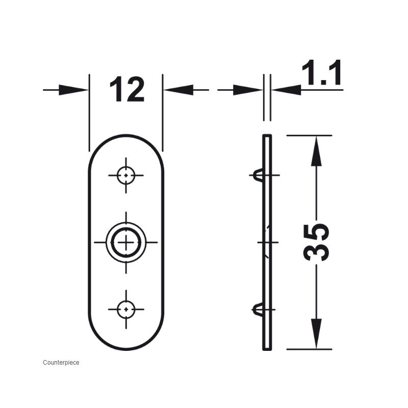 Blikk for magnetlås 35 x 12mm. Pris gjelder pr.stk. Mer info