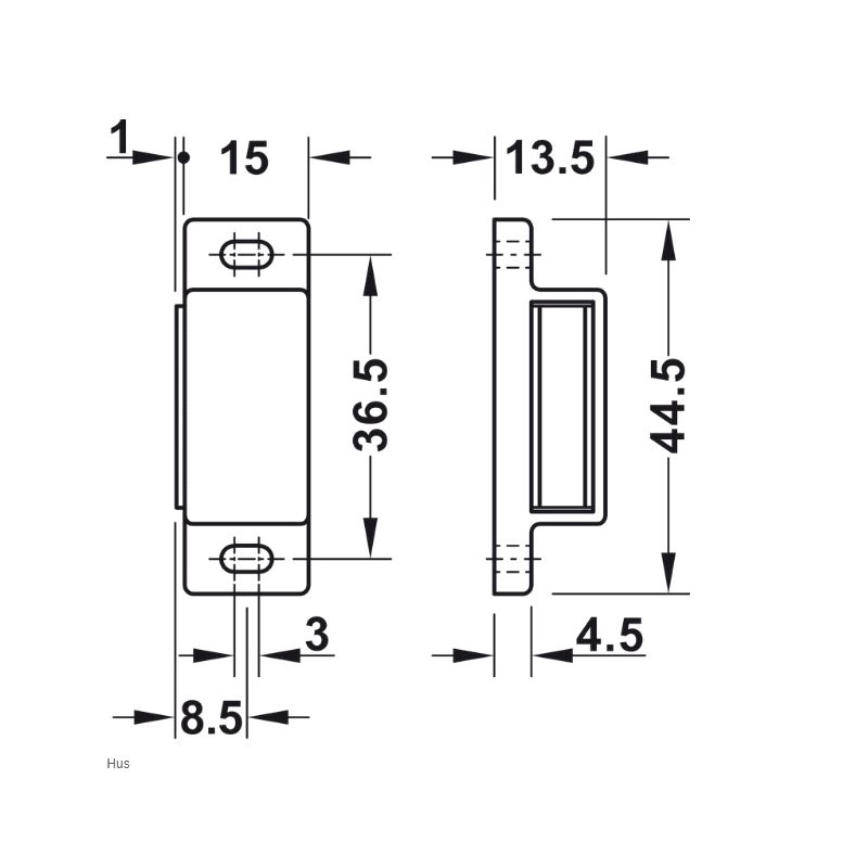 Magnetlås Plastik 4-5 kg. m/ motstykke Hvit