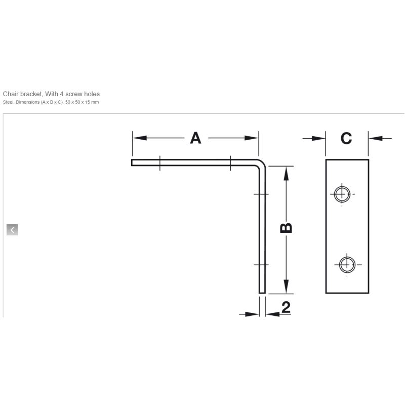 Stålvinkel 50 x 50 x 15mm, Blank Galv., 100-pk.