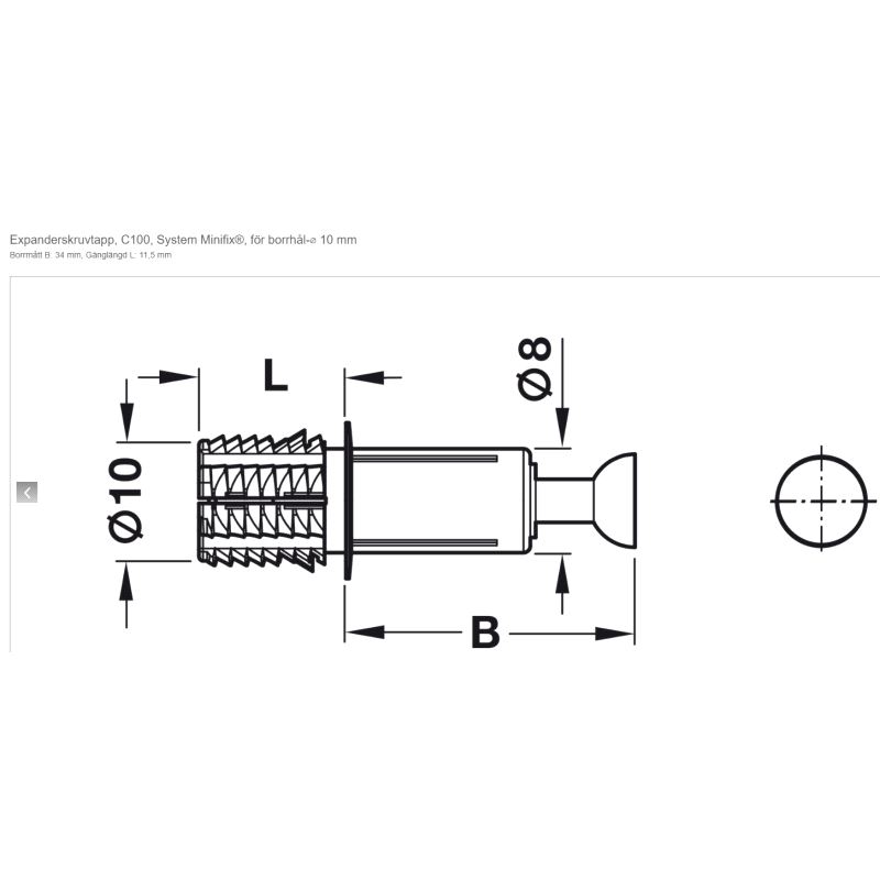 Minifix Spredebolt C100 B34/10, 100-pk.