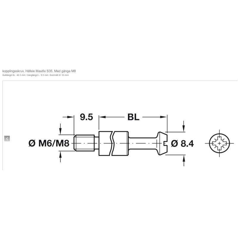 Samlebeslag Hafele Ø35, Eksenterbolt M8/55, 20-pk.