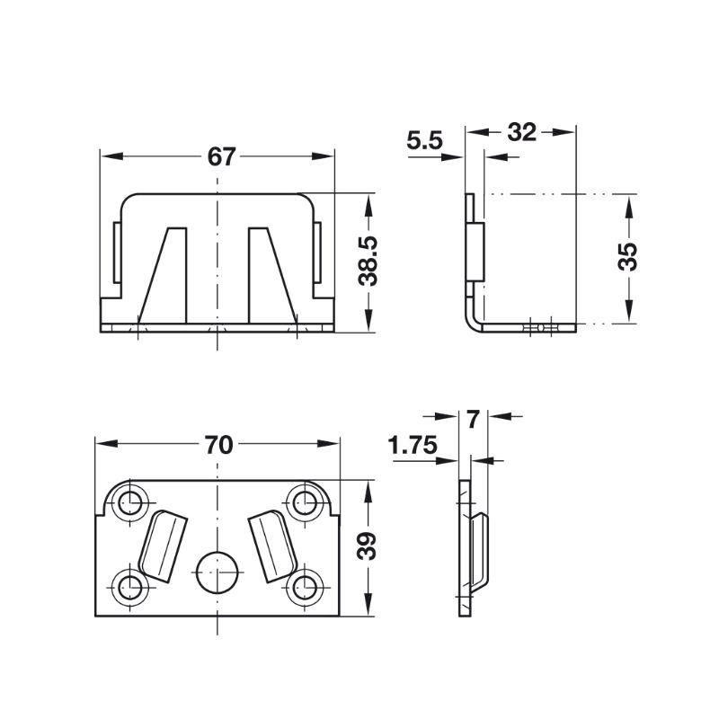 Sengebeslag for midtbjelke, 2 X 2-d