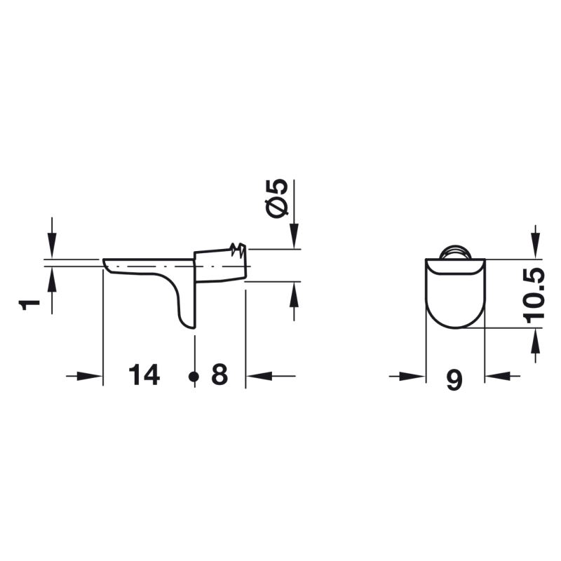 Hyllebærer for hull Ø5mm L , 100-pk.