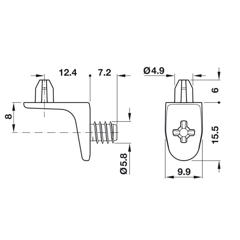 Hyllebærer for hull Ø5mm Iskr. m/tapp 100-pk.