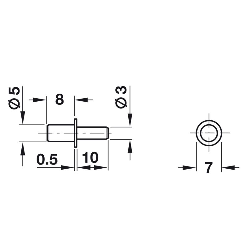 Hyllebærer for hull Ø3mm Ø5 m/krave Forniklet, 100-pk.