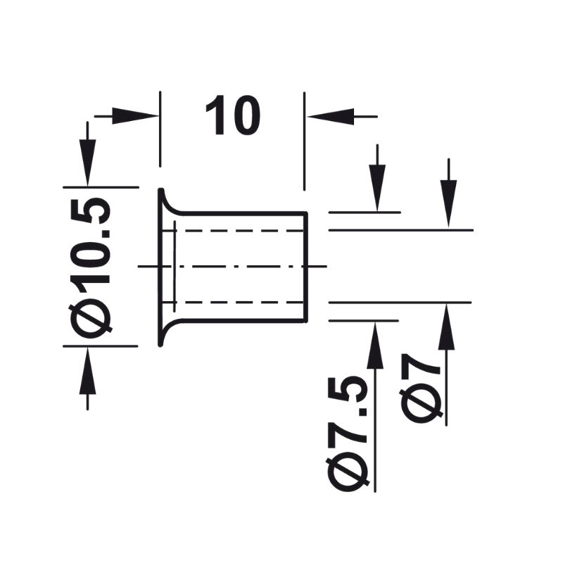 Hylse for hyllebærer m/tapp Ø7/Ø7,5mm Formessinget, 100-pk.