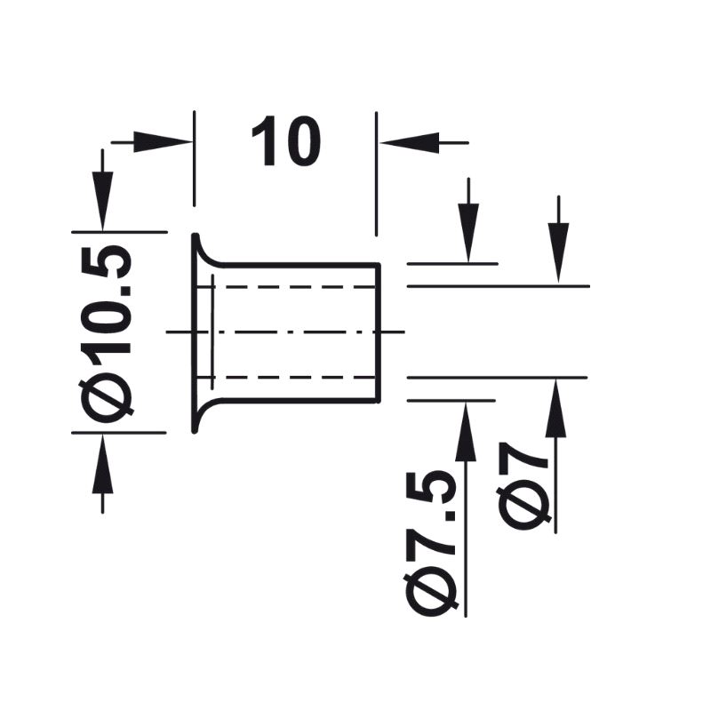 Hylse for hyllebærer m/tapp Ø7/Ø7,5mm Forniklet, 100-pk.