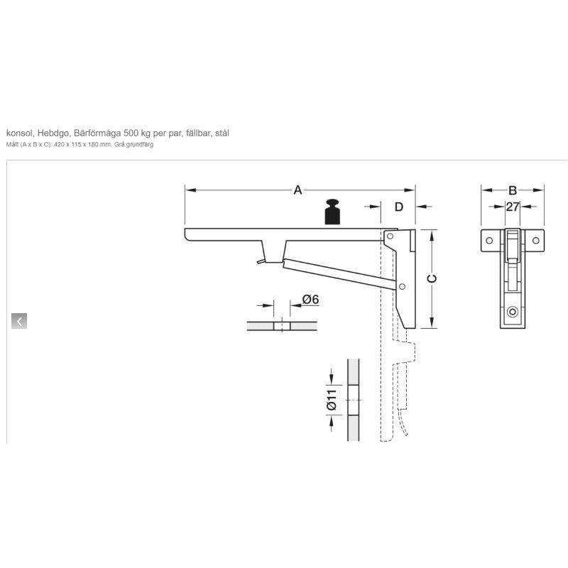 Hyllebrakett 420mm 250kg.