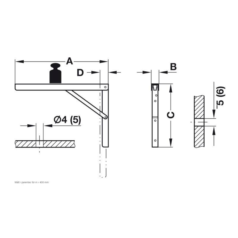 Hyllebrakett 400mm Hvit 75 kg.