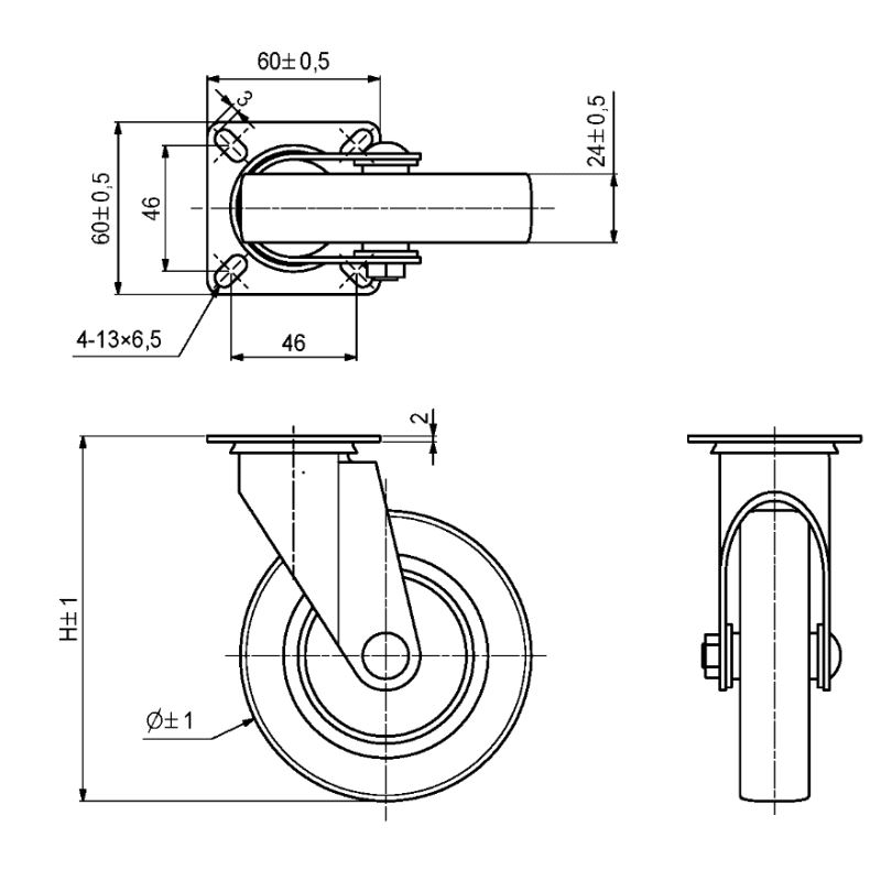 Plate 60 x 60mm. Max belastning 50 kg. Totalhøyde 127mm