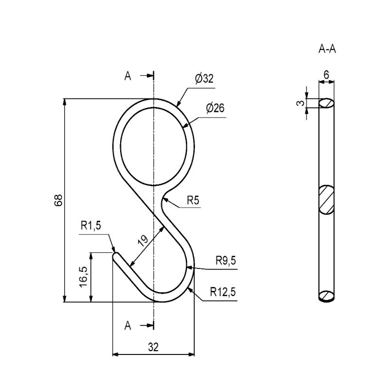 Garderoberør Ø25mm, Krok blank chrome