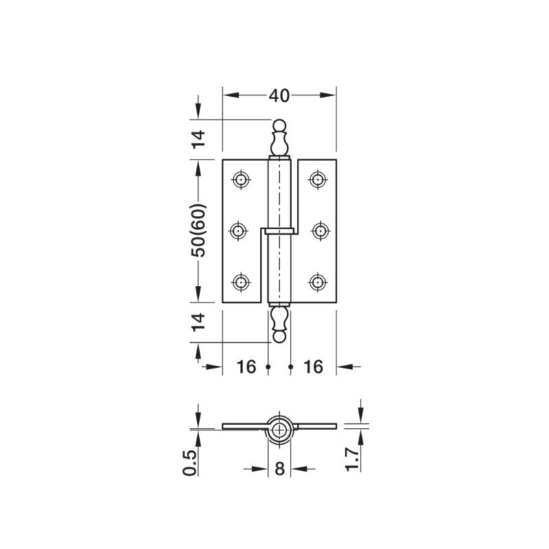 Lifthengsel 50 x 40mm m/pynt Mess.Høyre