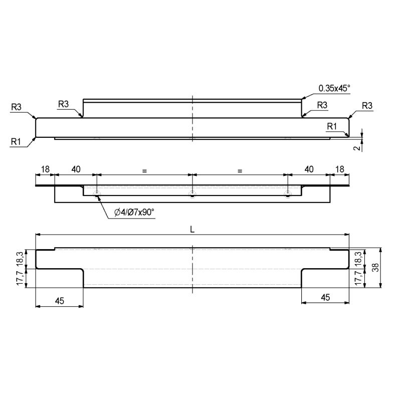 Grep for påskruing til topp av skuffefront. Aluminium med "Rustfri-look"