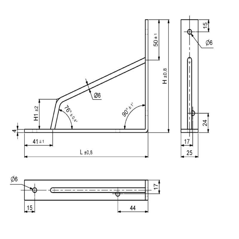 Pulverlakkert Sort RAL9005 hylleknekt 180x280x25mm