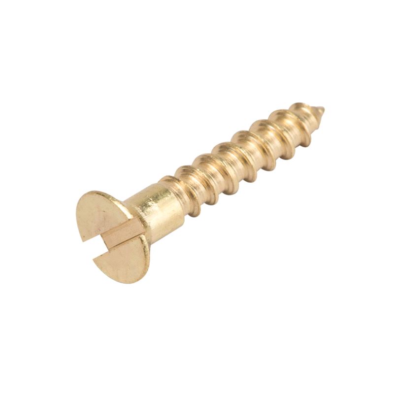 Skrue med flatspor i massiv messing. Pris gjelder pr. 200 stk.