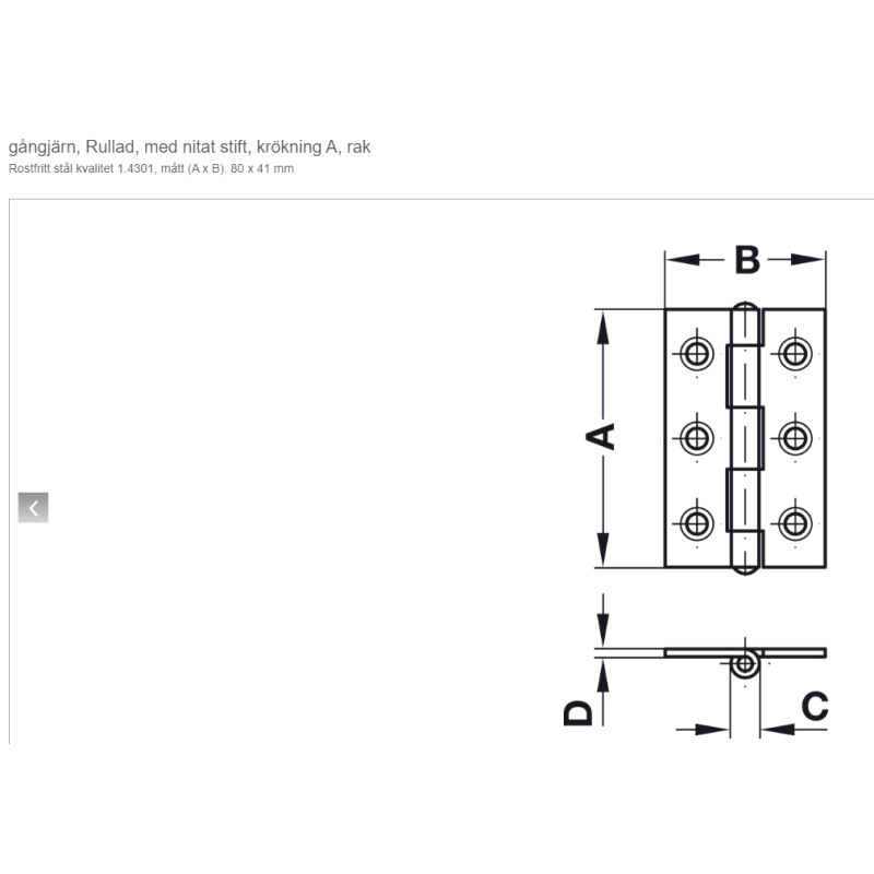 Kanthengsel Hafele Rustfri 80 x 41mm