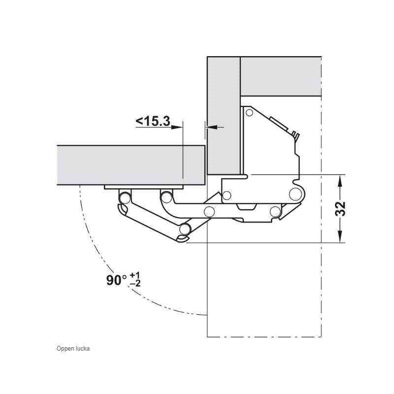 Hengsel for Campingvogn og Bobil. Justerbar kraft ift dørstørrelse. For dørtykkelse 15-16mm. Åpningsvinkel 90°. Versjon uten demping. Mer info HER