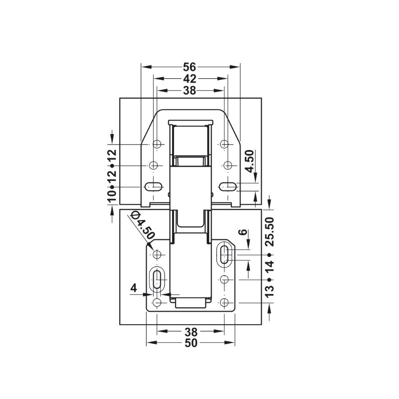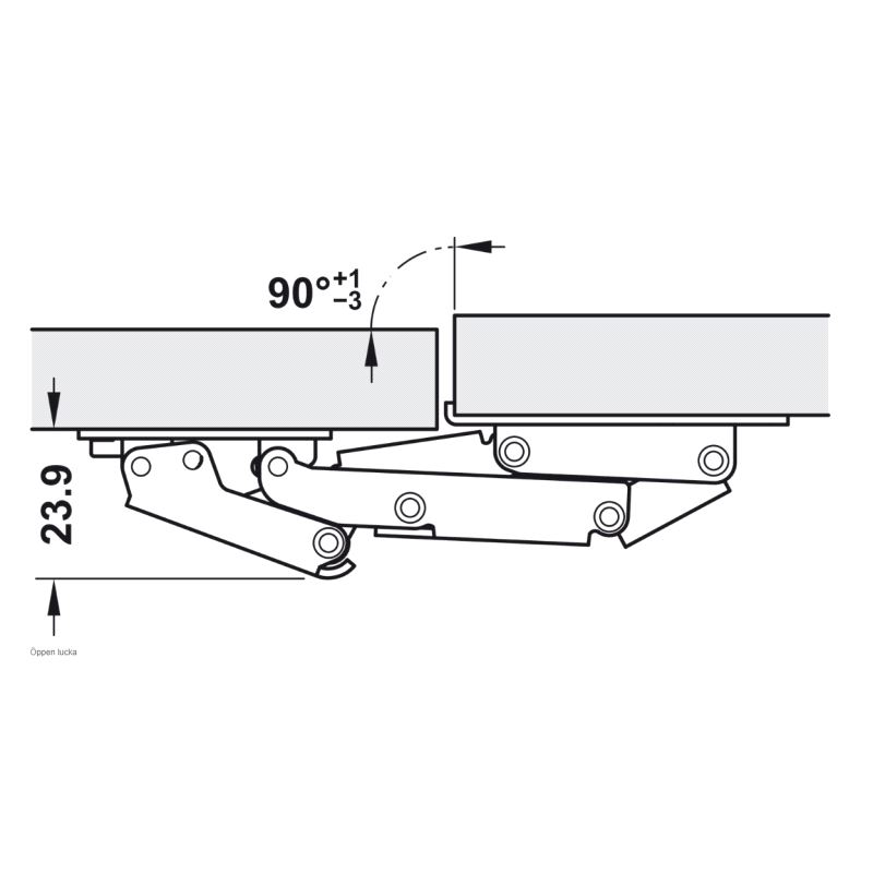 Hengsel for Campingvogn og Bobil. For dørtykkelse 15-16mm. Åpningsvinkel 90°. Versjon uten demping. Mer info HER