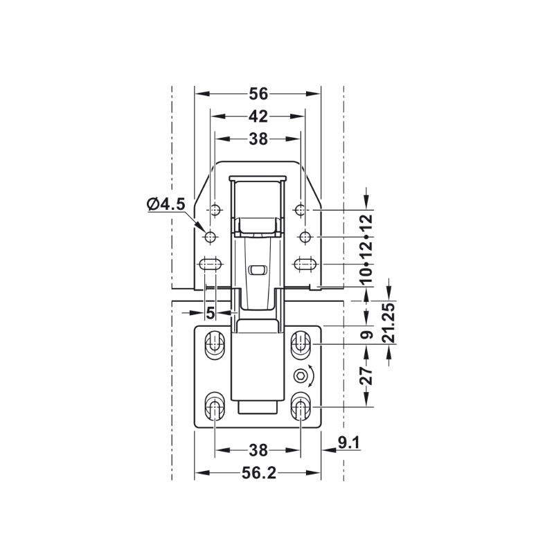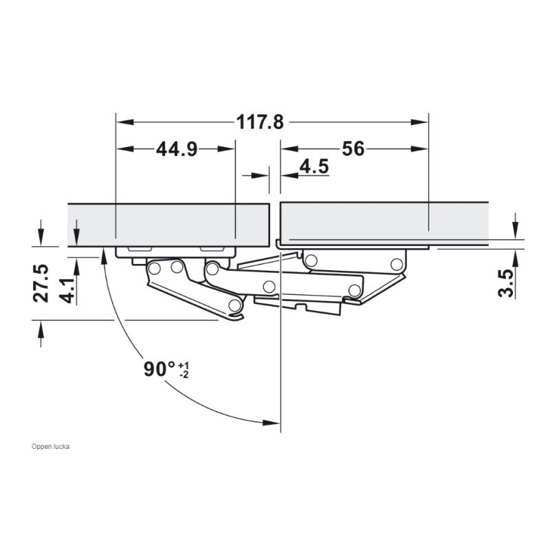 Hengsel for Campingvogn og Bobil. For dørtykkelse 15-16mm. Åpningsvinkel 90°. Versjon med demping. Mer info HER