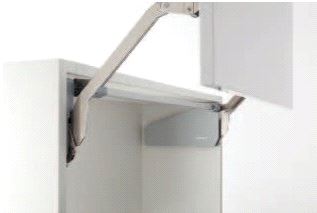 Front Liftbeslag. Fjærlett åpning, demper ved lukking. Pris komplett sett for 1 dør. For dørhøyde 430-600mm, vekt 5,0 - 9,7 kg. Mer info