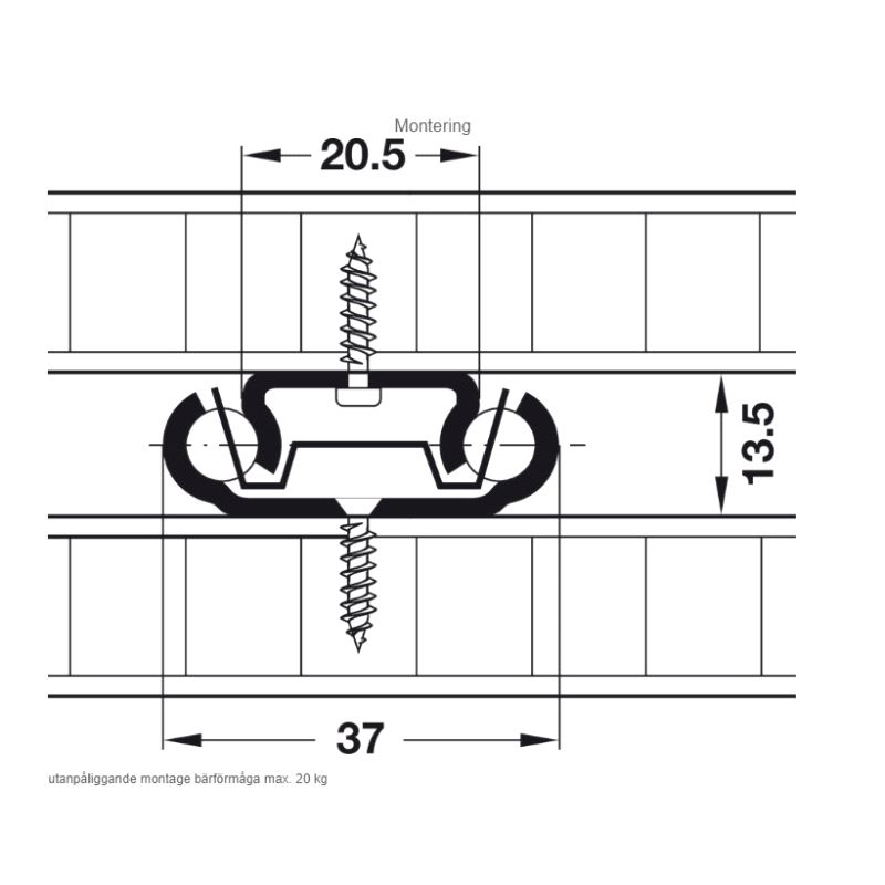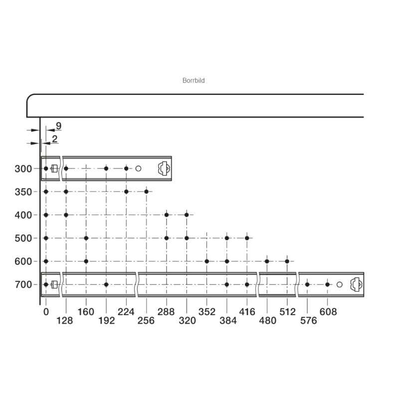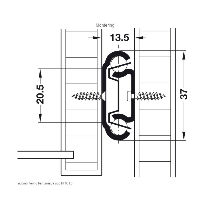 Deluttrekk, uttrekkslengde 457mm. Bæreevne 43 kg/par vertikalt, 20 kg./par horisontalt. Mer info