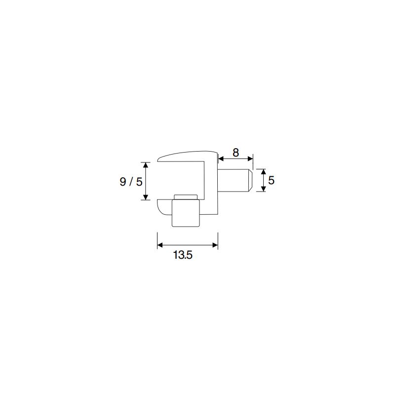 Glasshyllebærer for hull Ø5mm 14 x 14 x 9mm, 100-pk.