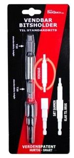 Vendbar bitsholder, hurtigbytte mellom de to bitsene du bruker mest. Bits T20 og T25 inngår i settet