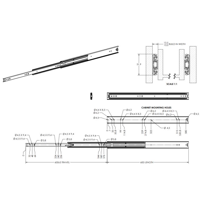 Kuleuttrekk FR5052 Fulluttrekk 600mm