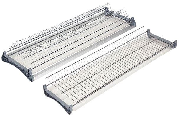 Tørkehylle med drypplate for tallerkner. Chrom wire og plast plate. For 600mm utvendig skrogbredde. For mer info, se