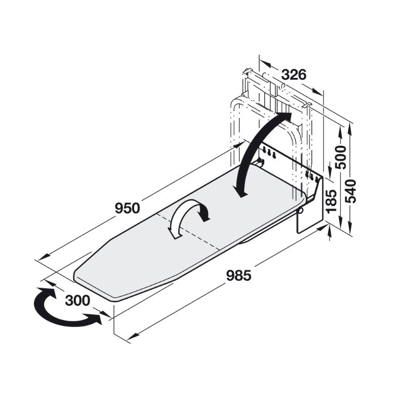 Strykebrett for veggmontasje. Sammenklappbart og svingbart. Overtrekk medfølger ikke, og bestilles separat (568.60.907 eller 568.60.923) Mer info