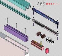 Komplett garnityr for 1 dør, system 600ABS med demping. Max. 50 kg. Dørvekt. Skinne til dette systemet finner du under system 500ABS. Mer info